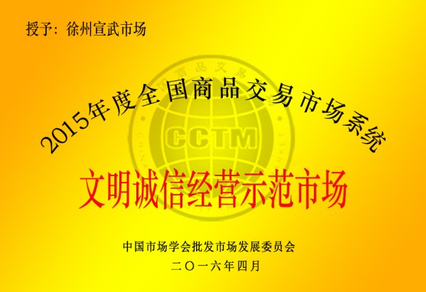 公司獲文明誠(chéng)信經(jīng)營(yíng)示范市場(chǎng)稱號(hào)